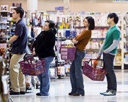 - Большая тележка – больше покупок. Значительное пространство тележки или корзины, предоставляемой супермаркетом для покупок, вызывает у покупателя подсознательное желание заполнить эту пустоту. Чем? Разумеется, единственно доступным ресурсом – товарами с полок и прилавков